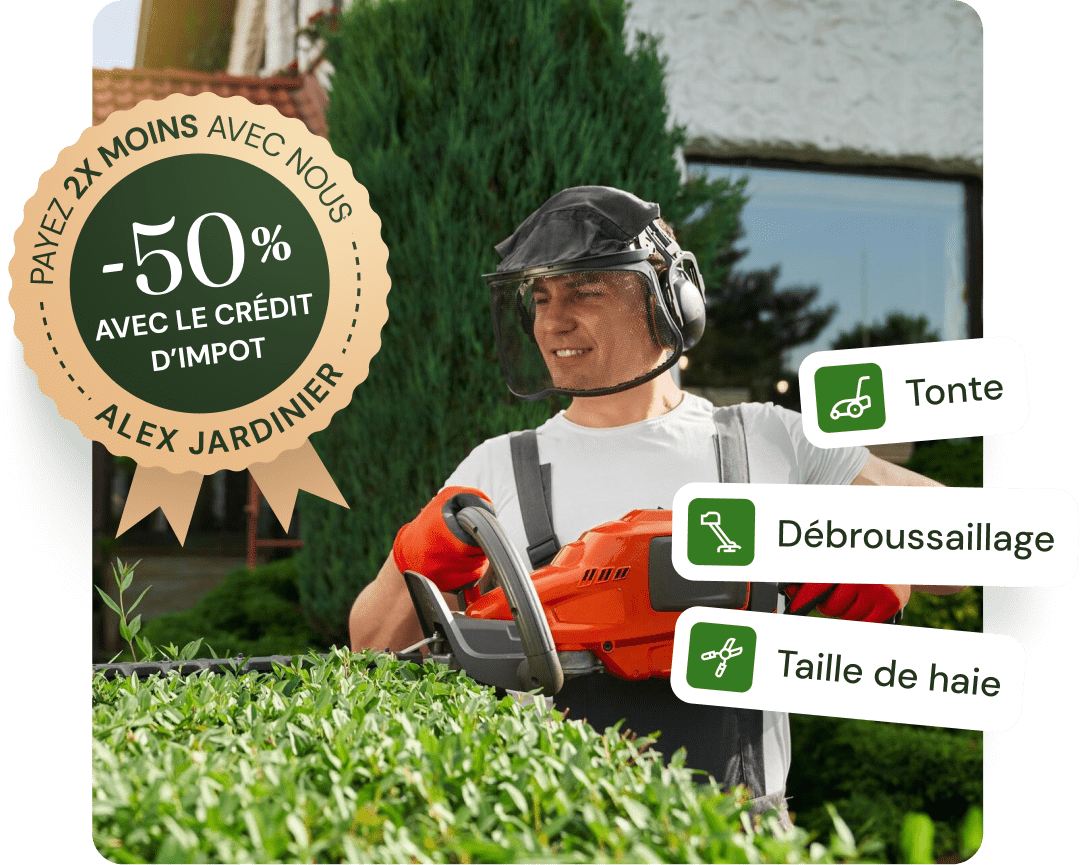 Mes prestations ouvrent droit à un crédit d’impôt de 50 % pour entretenir votre jardin à moindre coût.